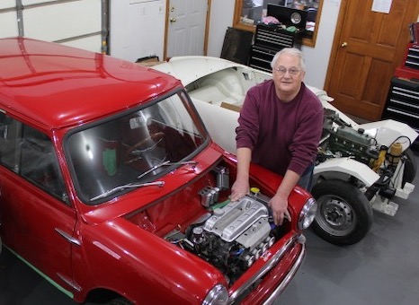 Yes, believe it or not, Meet John 3, err, John E. Actually, he's First John, not to get Biblical, but he was here First! Had he written this, he would have upped-the-ante on Dad Jokes. John has done so much for us over the last Decade Plus. When John officially retired from a long career, he came to help us and has been part of the Tapestry ever since. He's worked on cars, dealt with incoming and outgoing packages, answered calls and questions, attends local club meetings, and in the past number of years has been our link on Social media and the Go-To guy for our websites and Newsletters. If you are connected to one of our facebook pages, Newsletter, or even some pages on this website, you've come across his work. Before he had his license, he purchased his first car- a 1930 Model A Ford with a Rumble Seat. He kept it at his friends house so his Mom wouldn't find out. In 1964 (when he recieved his license) he started driving this stock appearing Model A with a Ford 312ci V8 (bored out to 324!) Y-Block with Three-Dueces and a three speed manual! It was updated to 'Juice Brakes', which later gave out. John has owned many neat projects over the years and is currently working to finish up his Bored and Cammed 1293cc motorcycle carb'ed Austin Mini.